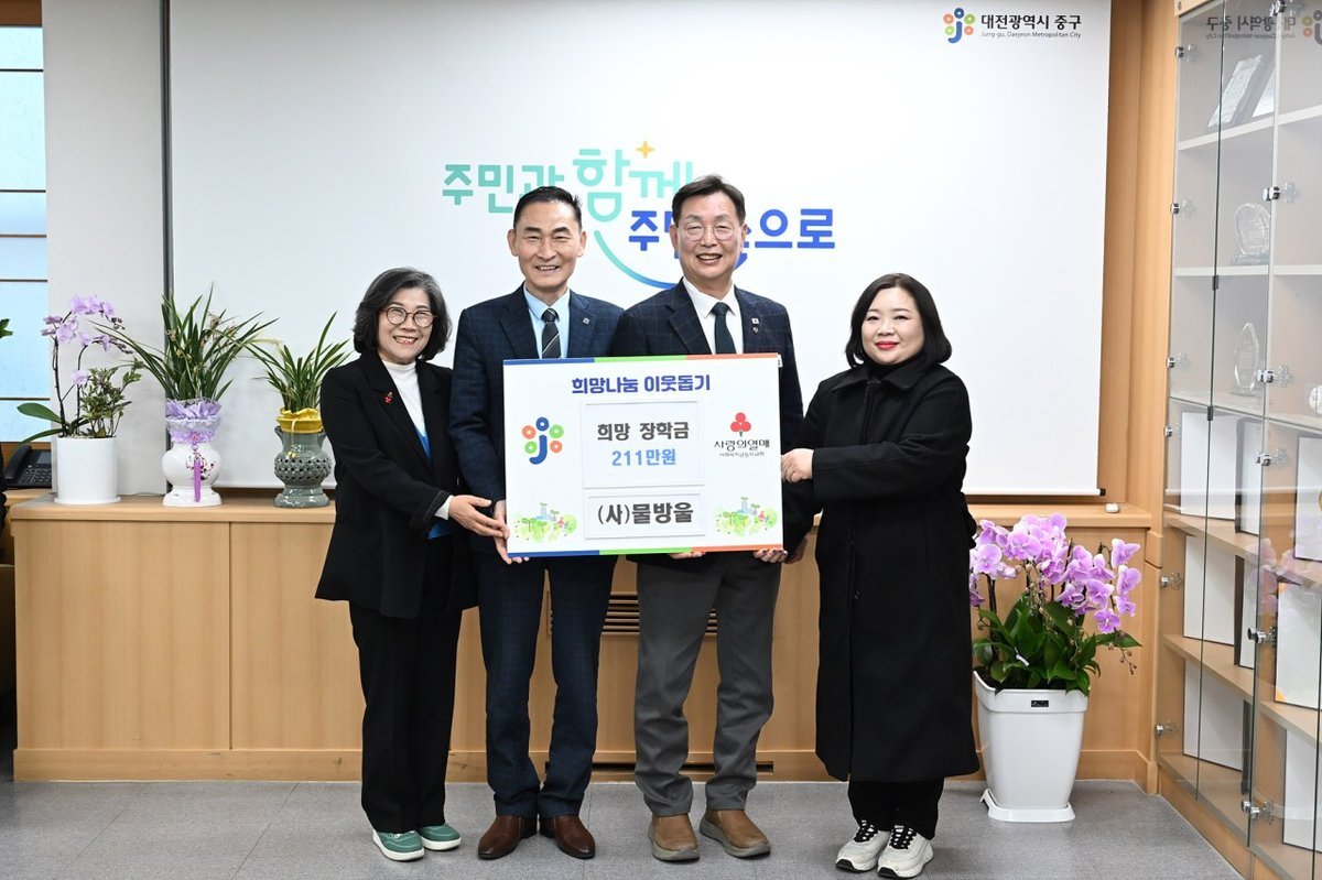 [충청뉴스큐] 대전 중구는 산성마을신문과 물방울에서 최근 서울대학교 의과대학에 합격한 태평2동 저소득 가정 학생을 위해 장학금 311만원을 기탁했다고 밝혔다.