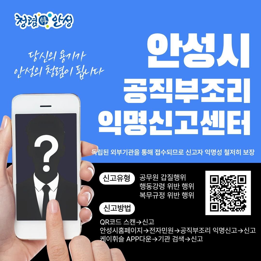 [충청뉴스큐] 안성시는 시민과 공직자 누구나 신분 노출의 우려 없이 공직부조리를 신고할 수 있는 ‘공직부조리 익명신고’시스템을 구축하고, 2026년 2월부터 본격적인 운영에 들어간다고 밝혔다.