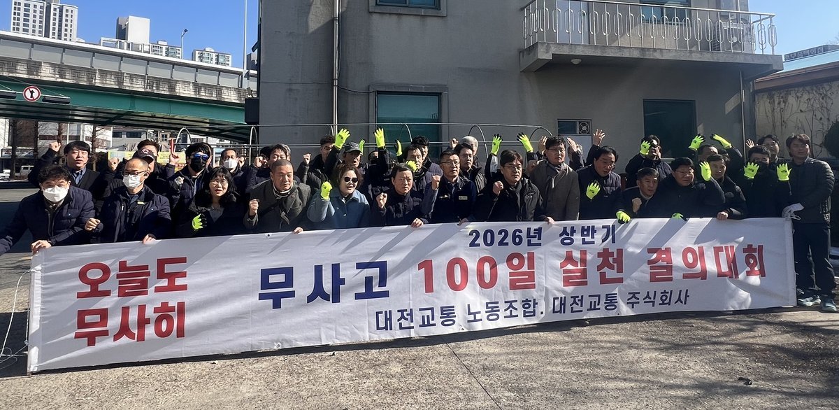 대전교통㈜ 차고지에서 진행된 이번 캠페인은 2026년 시내버스 무사고운동의 첫 시작을 알리는 무사고 100일 실천 결의대회로 운수종사자의 자발적인 참여를 대상으로 안전운행 실천 의지를 다졌다.