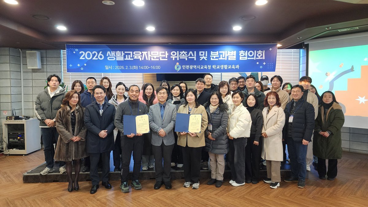 [충청뉴스큐] 인천광역시교육청은 3일 샤펠드미앙에서 생활교육자문단 50명을 대상으로 ‘2026년 위촉식 및 분과별 협의회’를 개최했다.