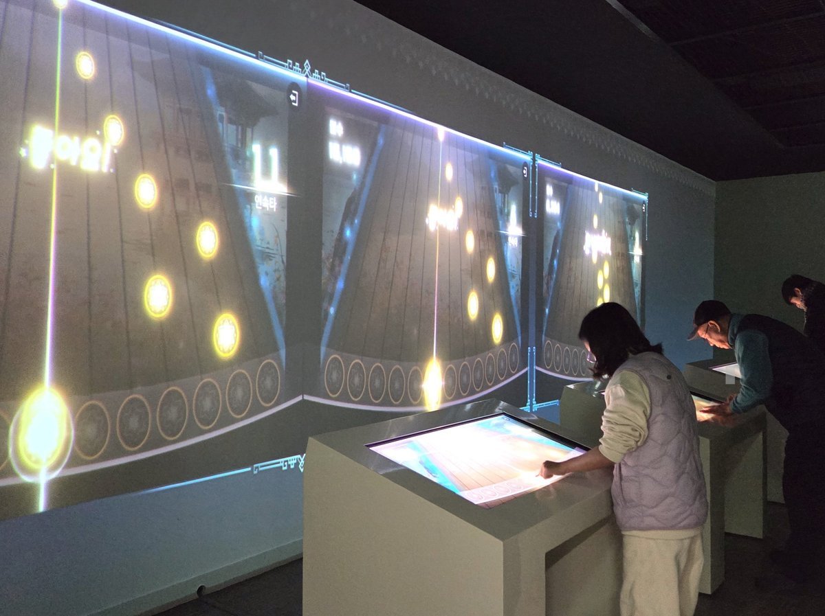 이번에 개편된 디지털 실감실은 충주의 문화유산과 자연경관 12곳을 3면 미디어월로 관람할 수 있는 콘텐츠와, 리듬게임 형태로 가야금을 연주하며 체험할 수 있는 콘텐츠로 구성됐다.