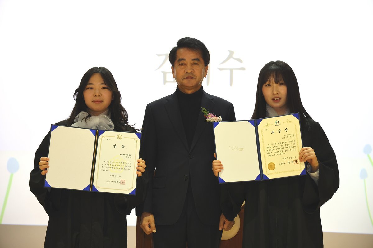 군수는 김민주 학생에게 표창장을 수여하며 졸업생들이 각자의 꿈을 향해 도전하는 과정에서 보은군이 든든한 응원자가 되겠다는 뜻을 전했다.