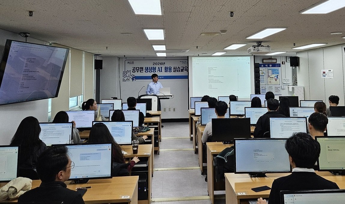 [충청뉴스큐] 아산시는 디지털 전환 시대를 발맞춰 행정 업무 혁신을 추진하기 위해 지난 2월 2일부터 시청 별관 전산교육장에서 공무원 500여명을 대상으로 ‘생성형 AI 활용 실무 교육’을 실시하고 있다고 밝혔다.