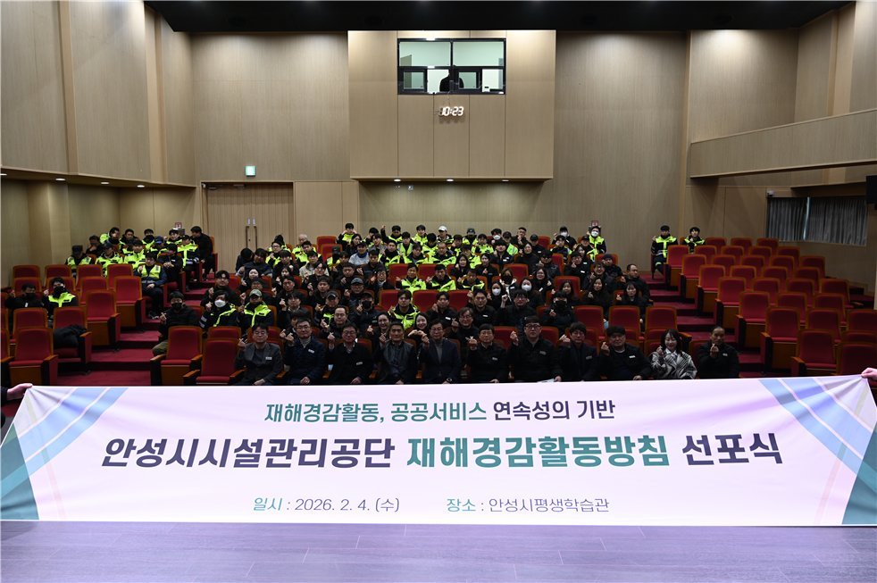[충청뉴스큐] 안성시시설관리공단은 지난 4일 안성시평생학습관에서 전 임직원이 참여한 가운데 재해경감활동방침 선포식을 실시했다.