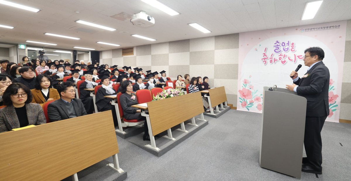 [충청뉴스큐] 인천광역시교육청평생학습관은 5일 도성훈 인천광역시교육감과 지도교사 및 가족이 참석한 가운데 초등·중학 학력인정 문해교육 졸업식을 진행했다.