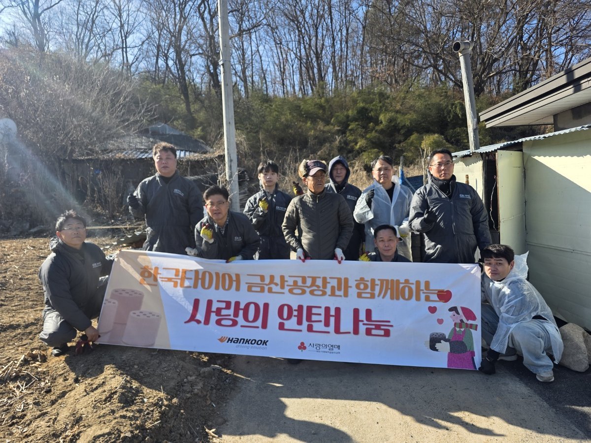[충청뉴스큐] 한국타이어 나눔회는 지난 7일 금산군 제원면 저소득층 가구에 연탄 300장을 전달하며 온기를 전했다.