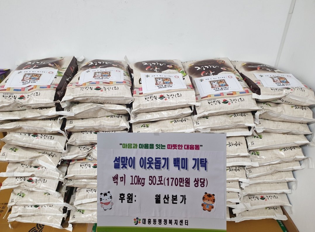 [충청뉴스큐] 대전 중구 대흥동 은 대흥동 소재 월산본가 식당 으로부터 설 명절을 맞아 백미 500kg 을 기탁받았다고 10일 밝혔다.