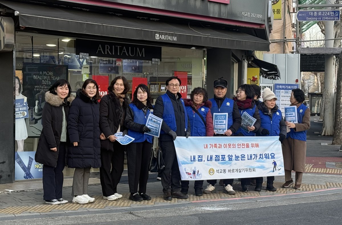 강민서 동장은 “겨울철에는 작은 부주의가 큰 사고로 이어질 수 있는 만큼, 주민 여러분의 관심과 실천이 무엇보다 중요하다”며 “이번 캠페인이 안전한 석교동을 만드는 데 큰 힘이 될 것으로 기대하며 동에서도 주민 안전을 위해 적극 지원하겠다”고 말했다.