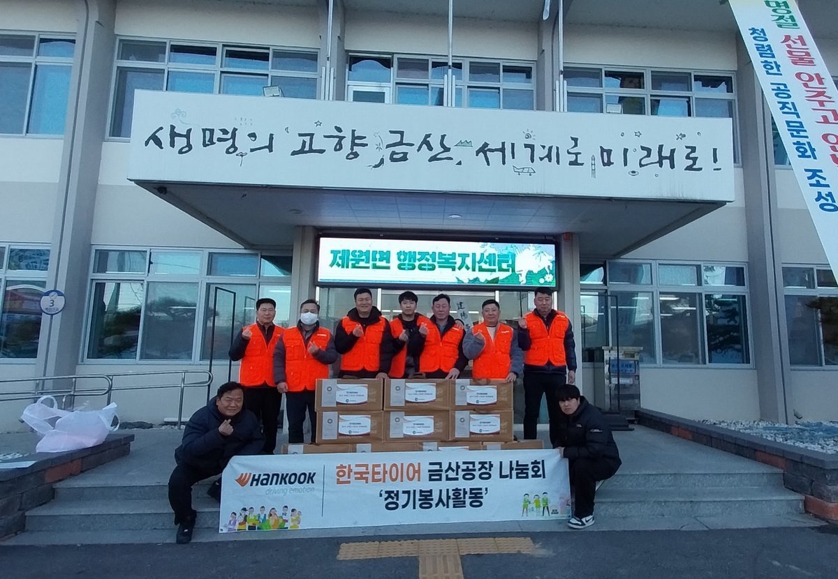[충청뉴스큐] 한국타이어앤테크놀로지 금산공장 나눔회 주간조는 지난 9일 설 명절을 앞두고 지역의 어려운 이웃 10가구를 위한 따뜻한 나눔을 실천했다.