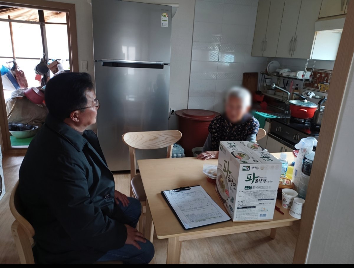 서일원 홍동면장은 96세의 어르신을 직접 찾아뵙고 안부를 여쭈며 생활 속 불편함은 없으신지 확인했다.