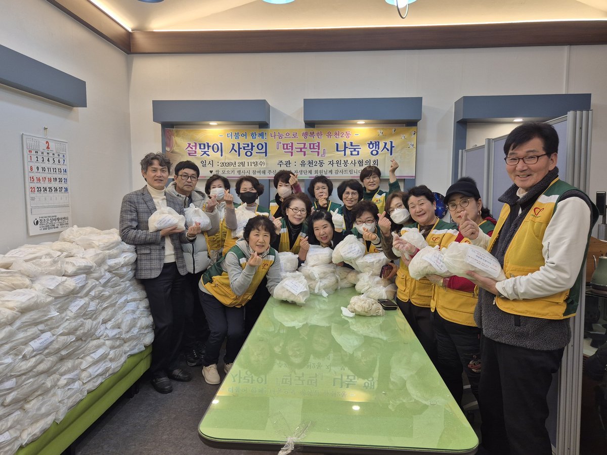 유천2동 자생단체 회원과 경로당, 지역 주민들의 자발적인 참여로 쌀 400kg과 소정의 후원금이 모였으며 모인 쌀은 떡국떡으로 가공한 뒤 자원봉사 회원들의 손길로 정성껏 포장되어 관내 어려운 이웃 약 350여명에게 전달됐다.