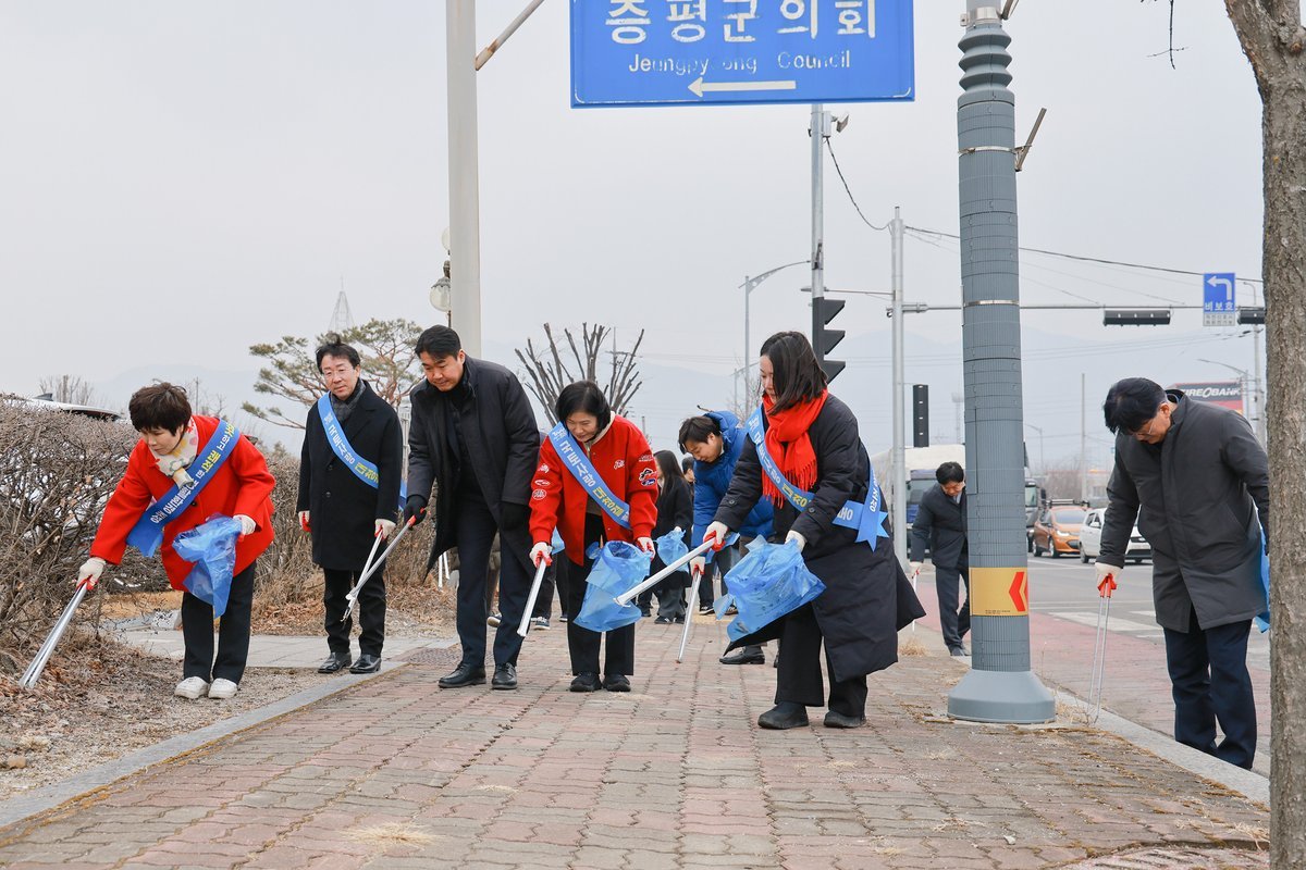 추운 날씨 속에서도 의원들은 직접 쓰레기 봉투를 들고 환경 정비에 구슬땀을 흘리며 깨끗한 증평 이미지 제고에 앞장섰다.