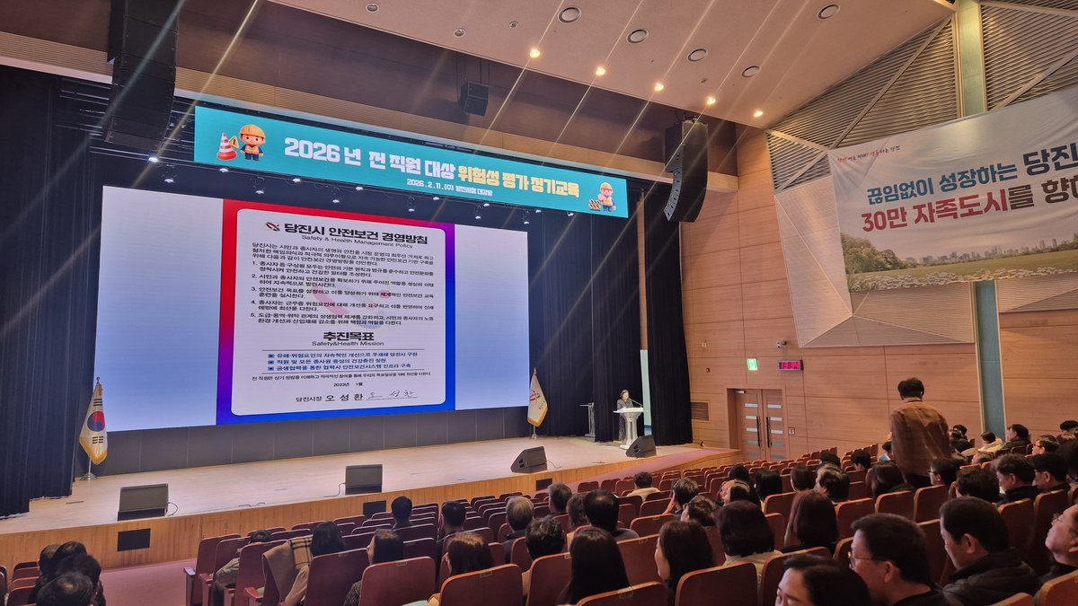 [충청뉴스큐] 당진시는 지난 11일 당진시청 대강당에서 현업근로자 관리감독자 및 당진시 직원을 대상으로 위험성평가, 중대재해 관련 산업안전보건교육을 실시했다고 12일 밝혔다.