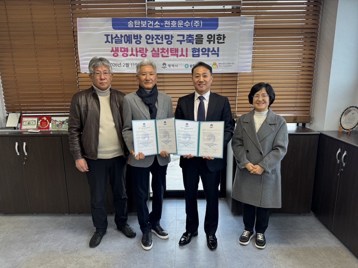 앞서 송탄보건소는 2025년 11월 18일 개인택시운송사업조합과 협약을 체결한 바 있으며 이번 협약을 통해 협력 범위를 법인택시까지 확대함으로써 보다 체계적인 민관 협력 기반을 마련하게 됐다.