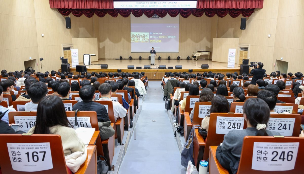 ‘AI가 답하는 시대, 생각하고 질문하고 움직이는 인천교육’을 주제로 한 이번 강연은 교직에 첫발을 내딛는 신규 교사들이 인천 교육 핵심 정책을 이해하고 미래 지향적인 교육 역량을 갖추도록 격려하기 위해 마련했다.
