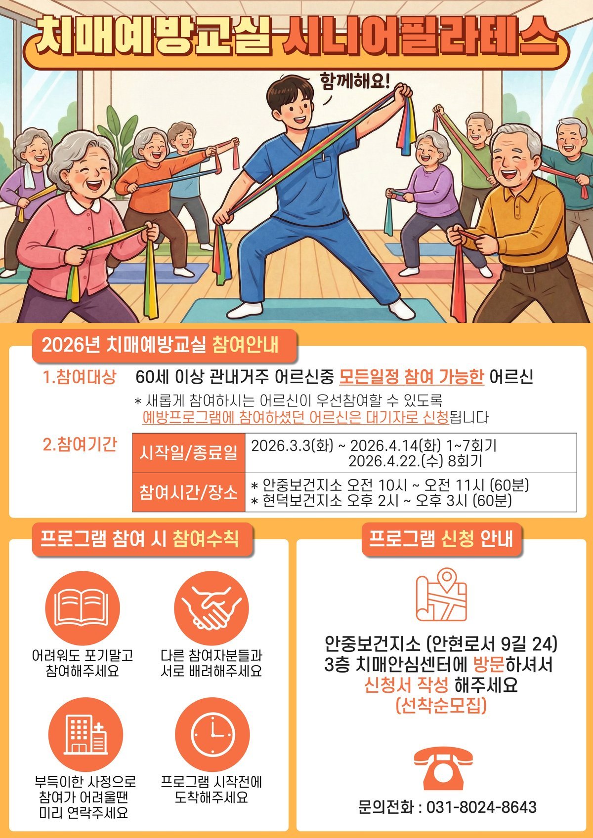 자세한 일정과 세부 사항은 안중보건지소 만성질환팀으로 문의하면 안내받을 수 있다.