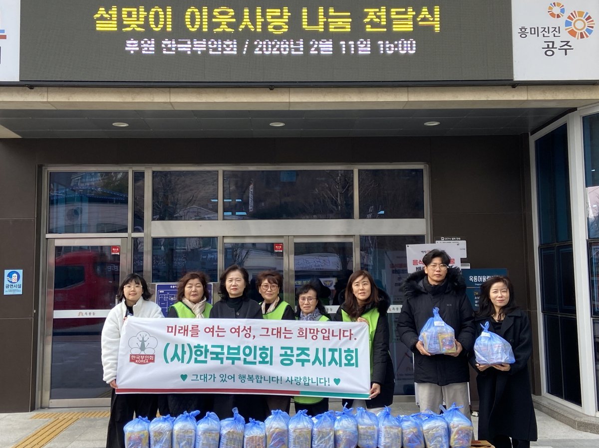 [충청뉴스큐] 한국부인회 공주시지회는 지난 11일 설 명절을 맞아 생활이 어려운 이웃을 돕기 위한 생필품을 공주시 옥룡동에 기탁했다.