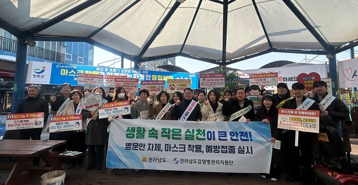 12일에는 전남도와 감염병관리지원단, 장흥군 보건소 직원 80여 명이 장흥 전통시장 일원에서 거리 캠페인을 펼쳐 병문안 자제, 손 위생, 마스크 착용, 기침예절 등을 집중 홍보했다.