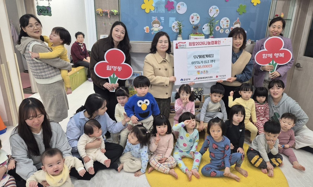 상귀정 월명동장은 “지역 내 어려운 이웃을 위해 따뜻한 마음을 보여준 우리어린이집 원생과 교사들에게 깊이 감사드린다”며 “기탁된 성금은 관내 복지사업에 소중히 활용하겠다”고 감사를 전했다.