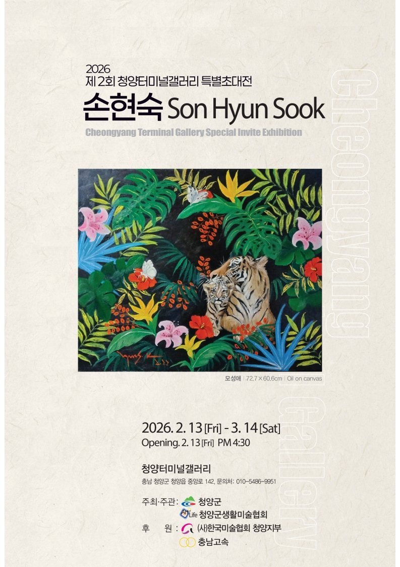 전시를 주관한 우제권 대표는 “터미널갤러리는 바쁜 일상 속에서 예술이 어떻게 삶의 여백을 채우고 위로가 될 수 있는지를 보여주는 상징적인 곳”이라며 “앞으로도 지역민과 예술, 그리고 사람이 자연스럽게 어우러지는 기획 전시를 지속적으로 선보여 청양의 문화 품격을 높여가겠다”고 전했다.