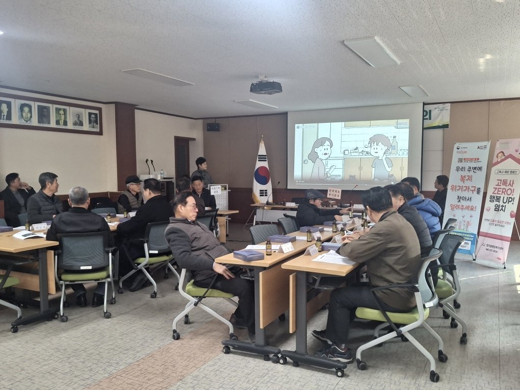 이날 교육에서는 '우리동네 위기가구 지킴이, 인적안전망- 위기가구 발굴, 이웃이 중요'영상을 시청하고 위기가구의 유형과 신고 절차를 안내했다.