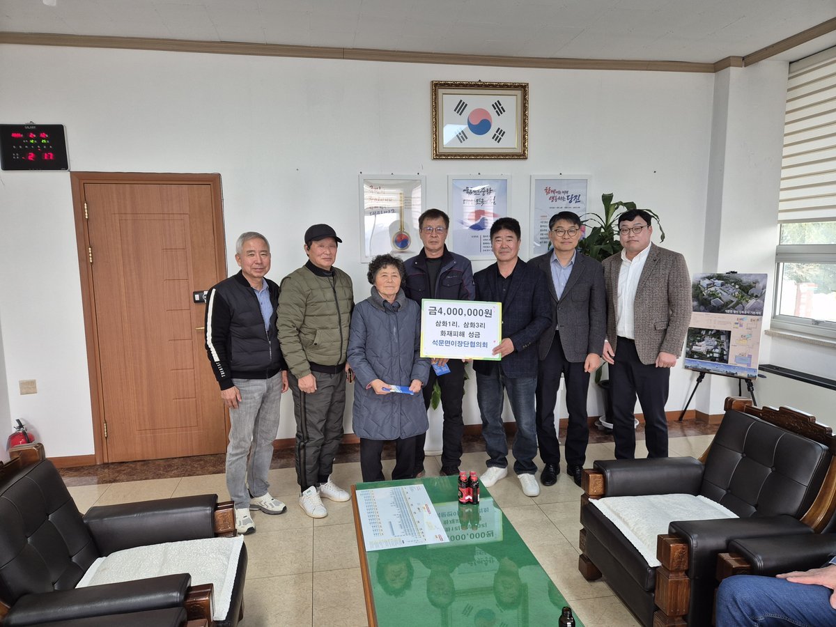 원종우 석문면 이장단협의회장은 “같은 지역 주민이 화재 피해를 입어 매우 안타까운 마음이었다”며 “이장단협의회가 작은 보탬이 될 수 있어 다행으로 생각하고 앞으로도 관내 주민들이 어려움 없이 생활할 수 있도록 더욱 노력하겠다”고 말했다.
