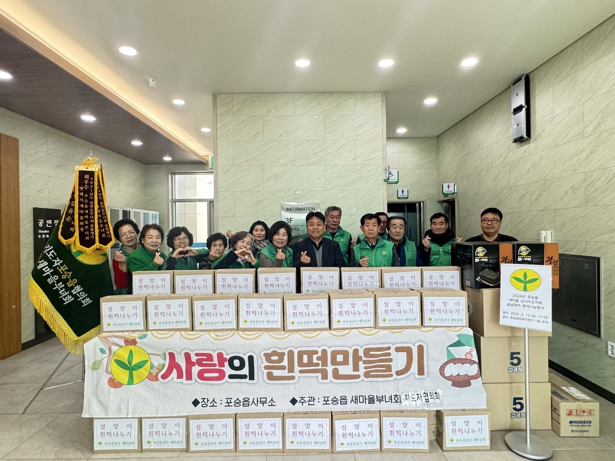 [충청뉴스큐] 평택시 포승읍 새마을 남녀지도자회는 다가오는 설 명절을 맞아 지난 13일 관내 소외된 이웃들을 위한 ‘설맞이 사랑의 흰떡 나눔’행사를 진행해 이웃사랑을 실천하며 따뜻하고 풍성한 설 명절 분위기 조성했다.