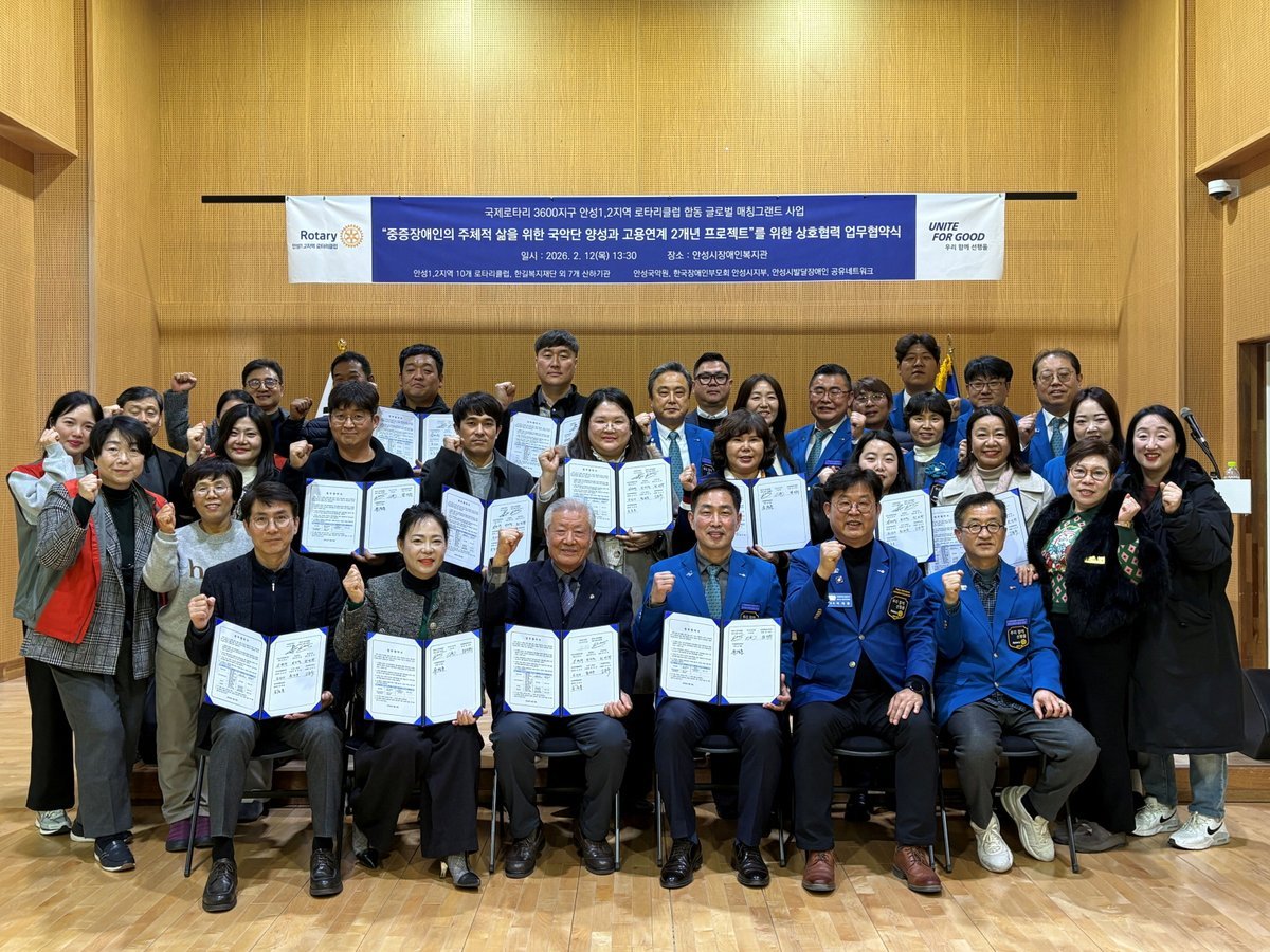 [충청뉴스큐] 사회복지법인 한길복지재단은 지난 2월 12일 동안성로타리클럽 주관으로 안성 1·2지역 10개 로타리클럽과 안성시 중증장애인의 문화예술 참여 확대 및 직업적 자립 지원을 위한 업무협약을 체결했다.