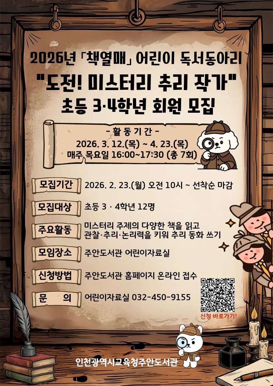 [충청뉴스큐] 인천광역시교육청주안도서관은 오는 23일부터 초등 3~4학년 학생을 대상으로 ‘책열매’독서동아리 회원을 모집한다.