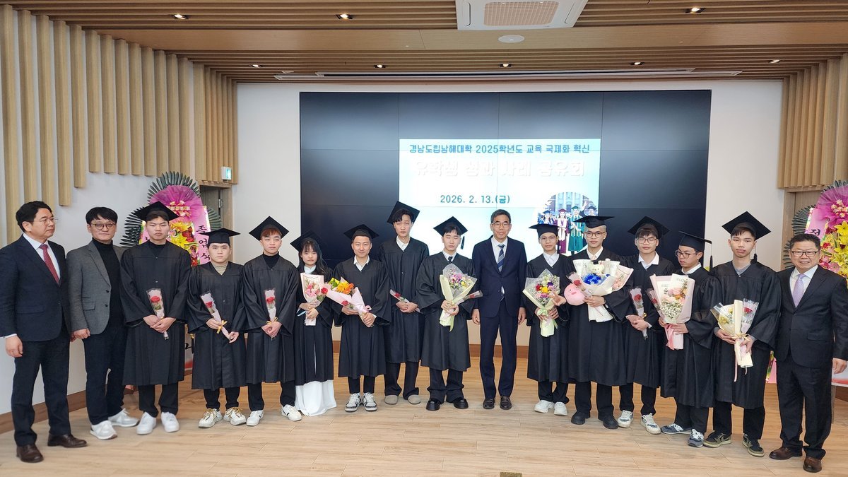 노영식 남해대학 총장은 “유학생의 성과를 함께 축하하고 공감하는 자리를 마련함으로써 대학에 대한 신뢰도와 자긍심이 한층 강화될 것으로 기대한다”며, “유학생들이 지역의 구성원으로서 안정적으로 정주할 수 있도록 지속적으로 지원을 확대해 나가겠다”고 밝혔다.