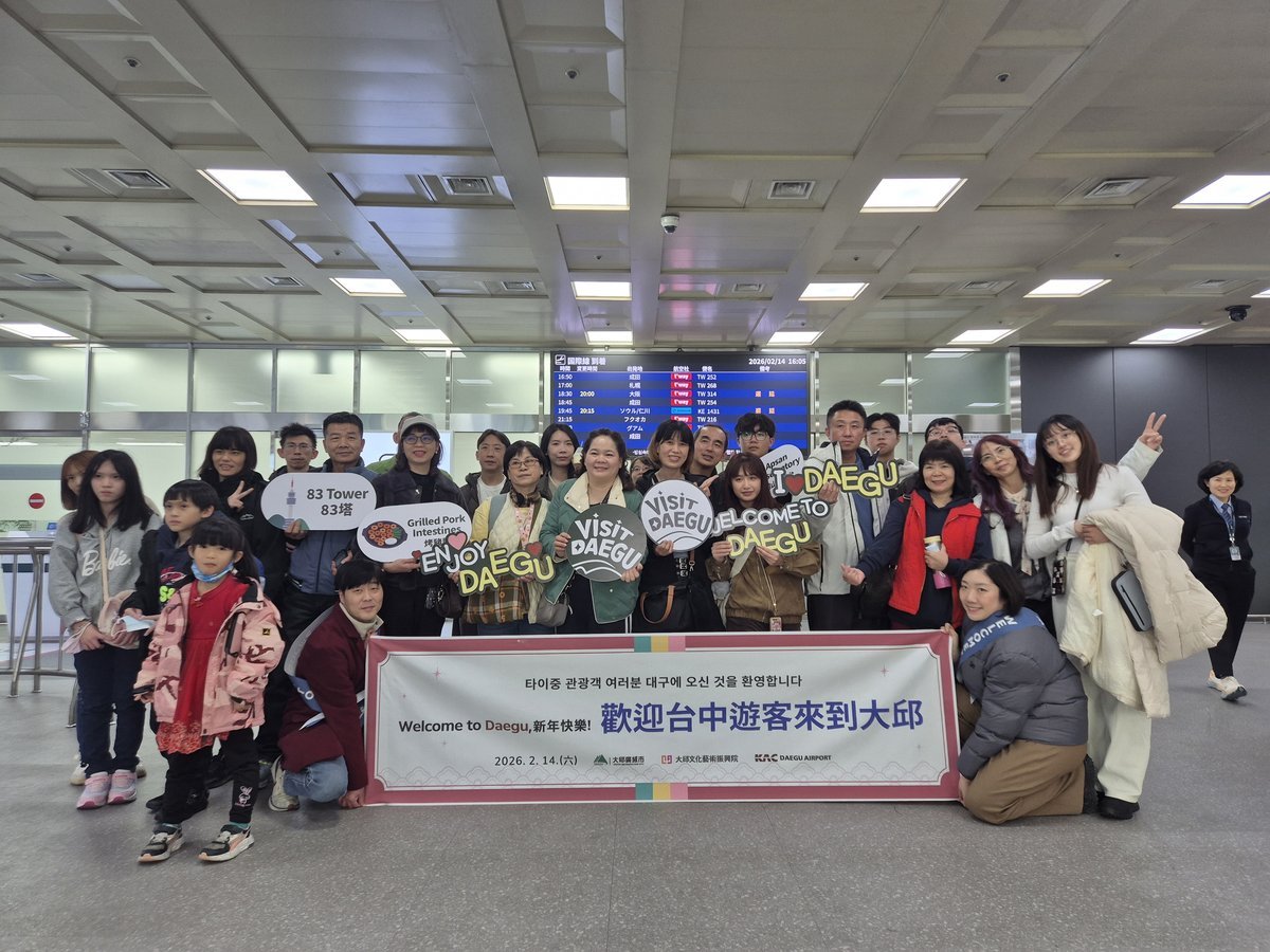[충청뉴스큐] 대구광역시와 대구문화예술진흥원 관광본부는 설 연휴 기간 대구국제공항 통해 입국한 대만 타이중 및 홍콩 관광객을 대상으로 환대 행사를 개최했다.