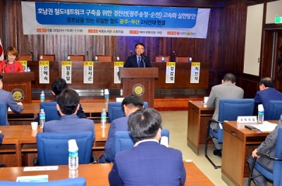 [충청뉴스큐] 경전선 광주~순천구간의 고속전철화 사업을 조기에 추진하기 위한 국회 토론회가 26일 오후 국회도서관 소회의실에서 열렸다.
