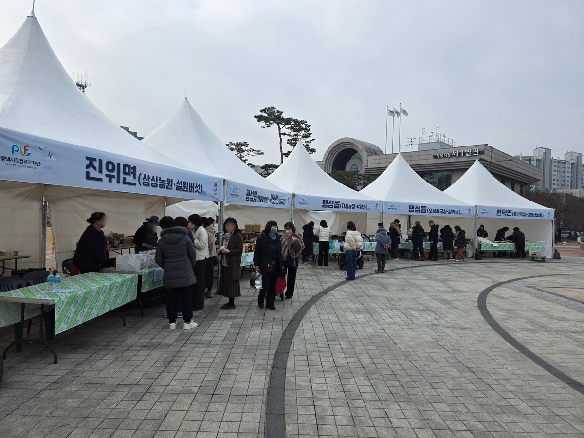 [충청뉴스큐] 평택시는 지난 11일부터 13일까지 이충레포츠공원, 안중 실내체육관, 평택시청 앞 광장에서 권역별로 운영한 ‘설맞이 농특산물 직거래장터’를 성황리에 마무리했다고 밝혔다.