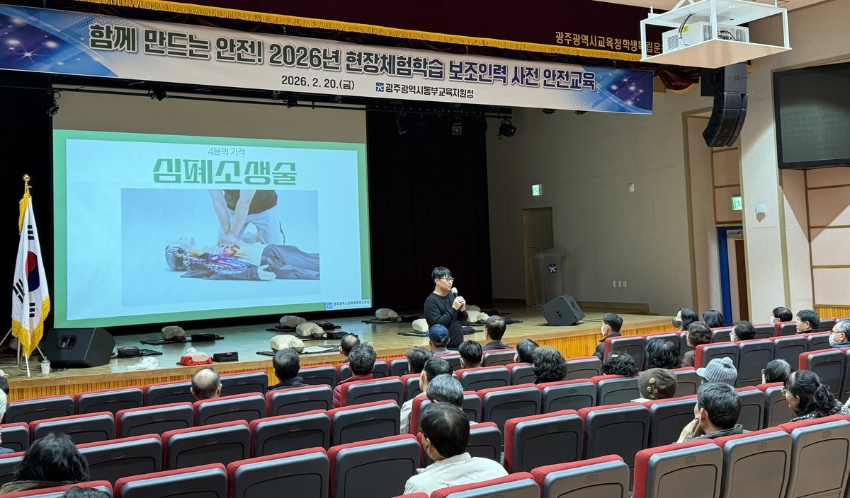 이에 앞서 광주동부교육지원청은 20일 광주시교육청학생독립운동기념회관 대강당에서 보조인력 190명을 대상으로 심폐소생술과 응급처치 이론 및 실습 연수를 실시했다.
