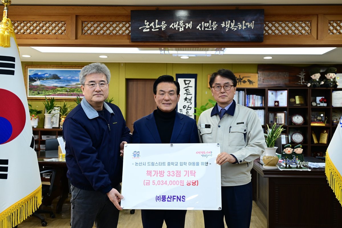 논산시는 지난 19일 ㈜풍산FNS가 취약계층 아동들을 위해 503만원 상당의 책가방을 기탁했다고 전했다.