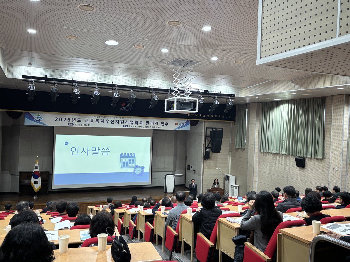 이러한 현장 중심의 복지를 실현하고자 경남교육청은 23일 교육연수원에서 사업 운영 학교 관리자를 대상으로 역량 강화 연수를 개최했다.