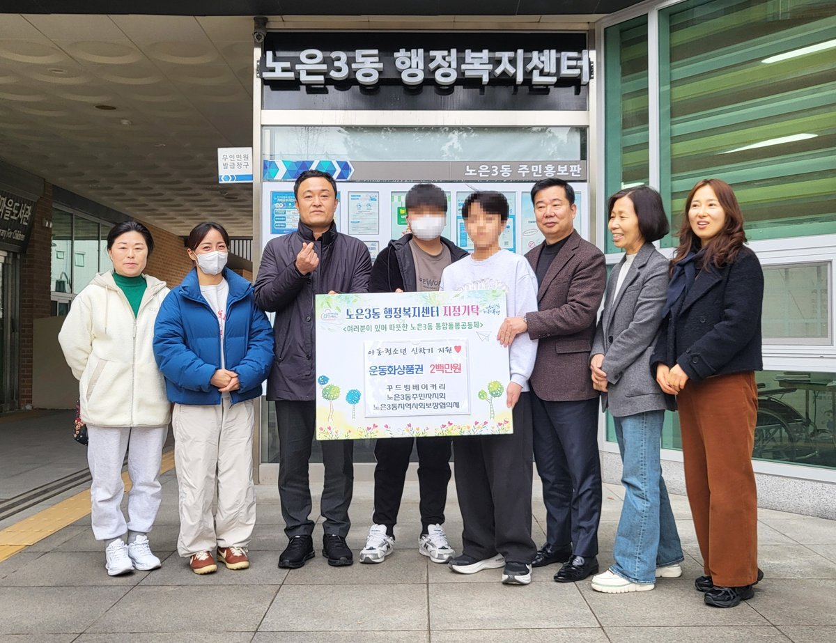[충청뉴스큐] 이번에 전달된 상품권은 노은3동 주민자치회와 꾸드뱅베이커리의 후원금, 저소득가정을 위한 지정 기탁금을 모아 마련됐으며 관내 저소득가구 아동·청소년 20명에게 1인당 10만원 상당의 운동화 상품권이 전달될 예정이다.