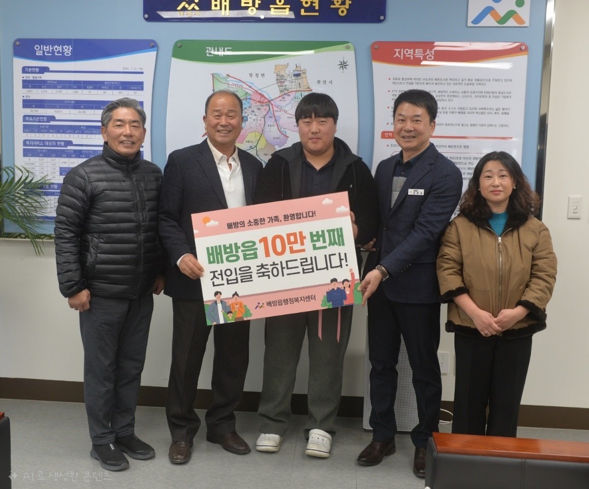 10만 번째 배방읍민은 13일 출생한 아기로 아버지가 24일 오후 1시께 출생신고를 마치며 주민등록상 10만 번째 주민으로 기록됐다.