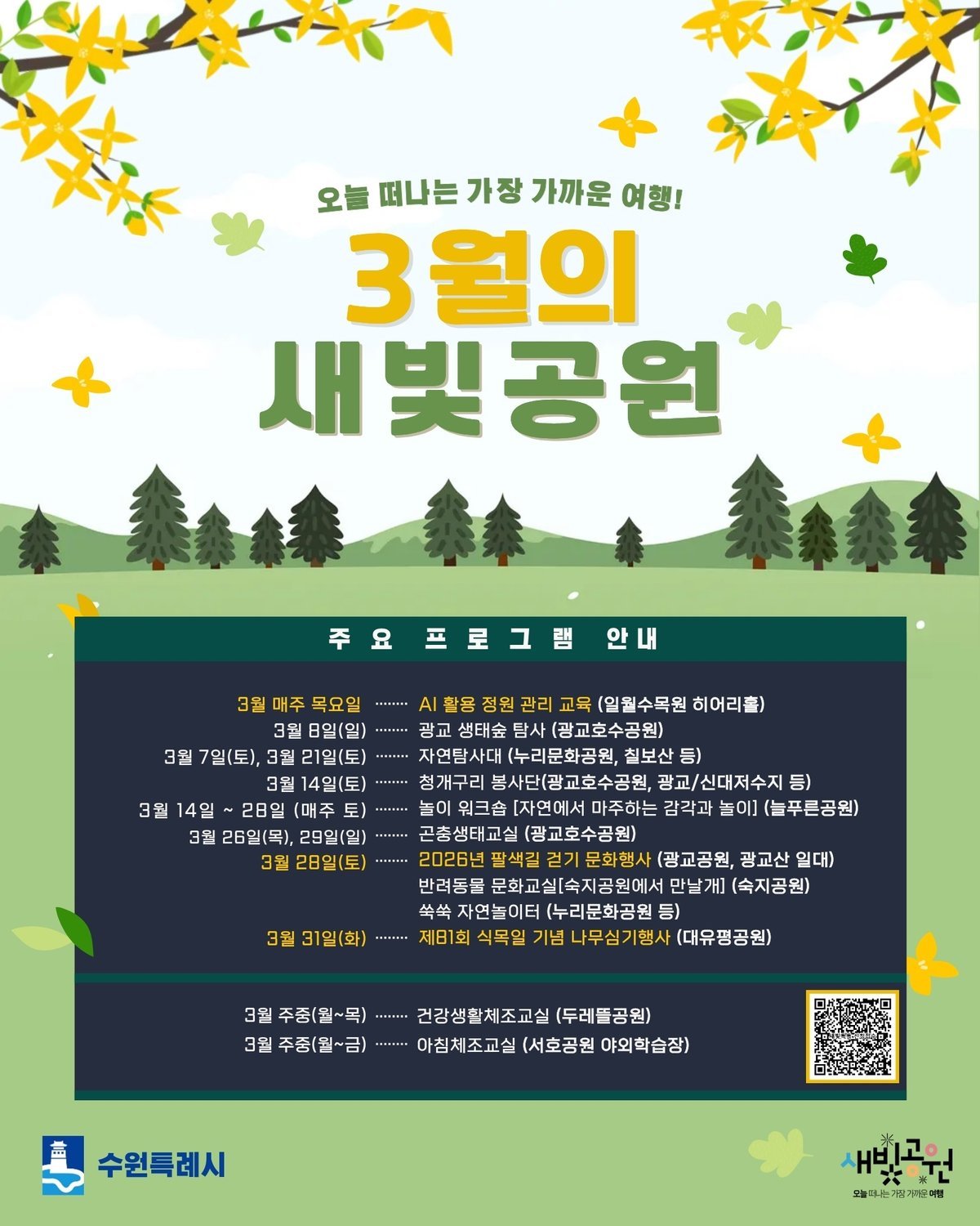 [충청뉴스큐] 수원특례시는 3월 한 달간 도시공원에서 다채로운 시민 참여형 봄맞이 프로그램을 운영한다.