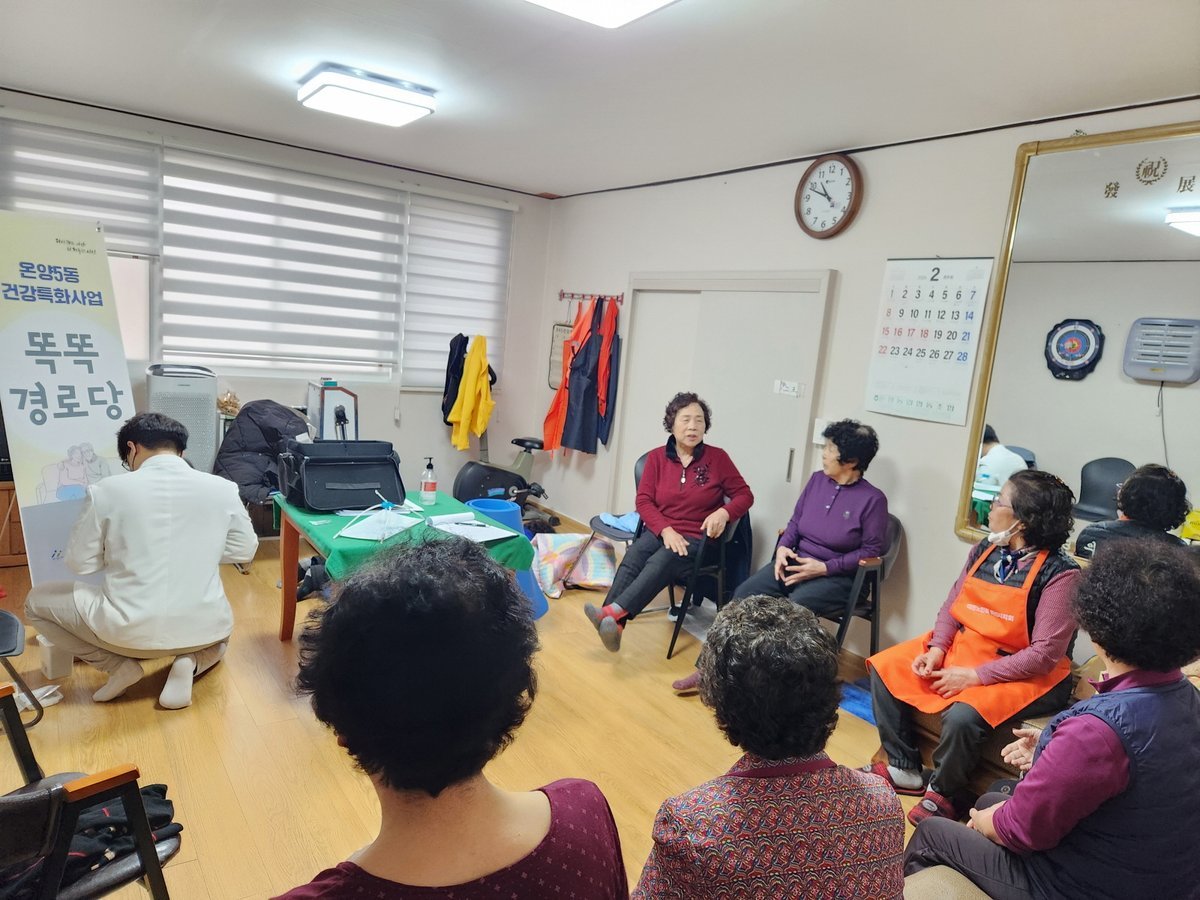 [충청뉴스큐] 온양5동은 지난 25일 경로당에서 어르신 20여명을 대상으로 찾아가는 건강 특화 프로그램 '똑똑 경로당'을 진행했다.