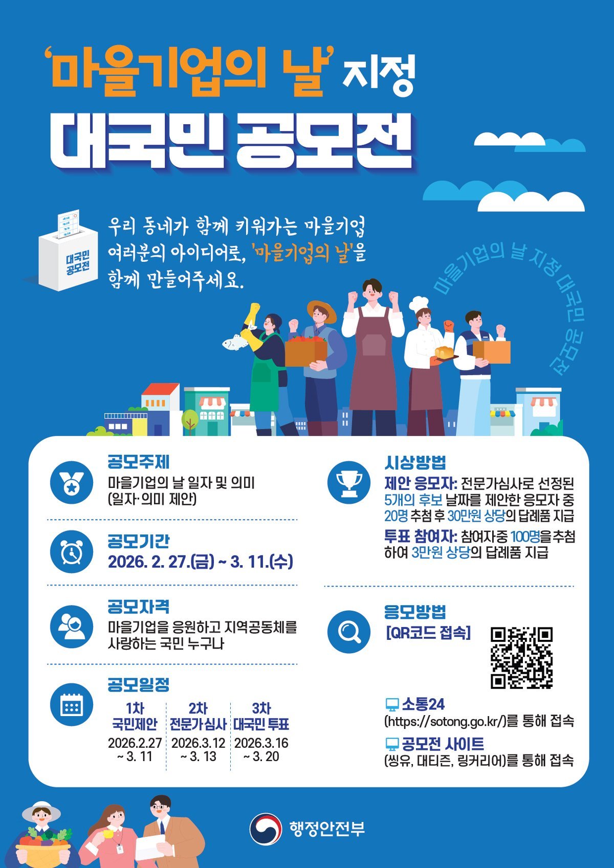 이번 공모의 주제는 ‘마을기업의 날’이며, 2월 27일부터 3월 11일까지 진행한다.