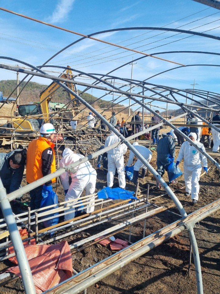 이달 7일 발생한 해당 사고로 인명피해는 없었으나, 비닐하우스와 내부 가재도구와 적재물이 소실되어 화재 잔해와 폐기물이 상당했다.