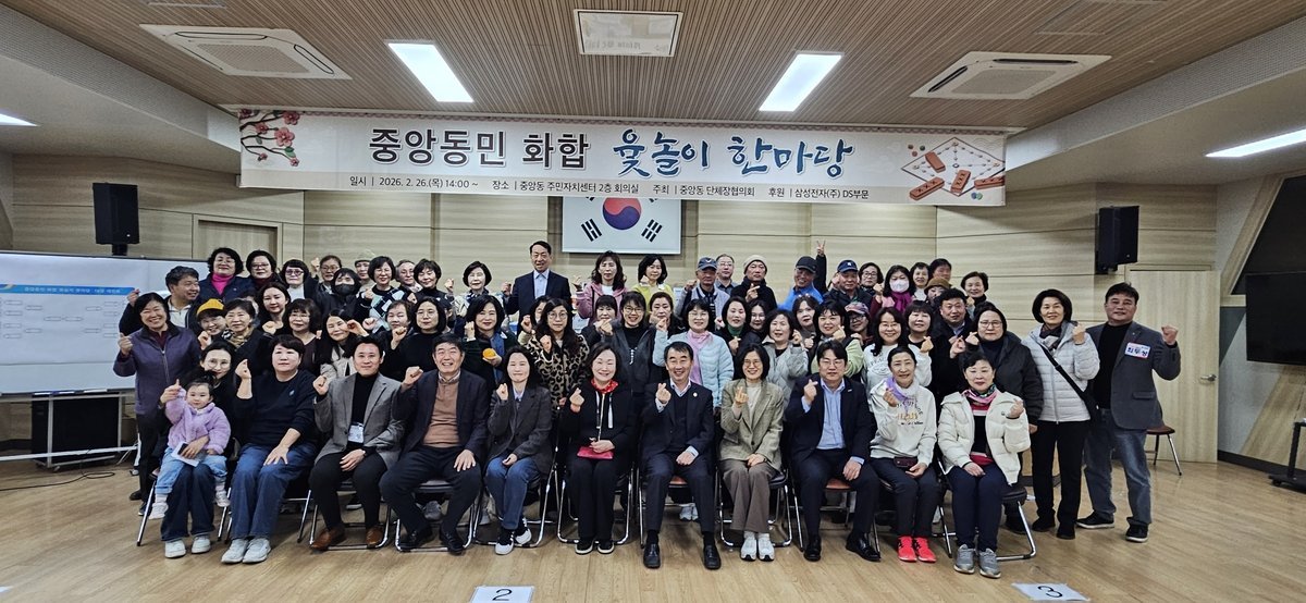 중앙동 12개 단체장협의회가 주관하고 삼성전자 DS부문 후원으로 열린 이번 행사는 전통 민속놀이인 윷놀이를 통해 주민 간 소통과 화합을 증진하고 지역 공동체 결속을 강화하기 위해 마련됐다.