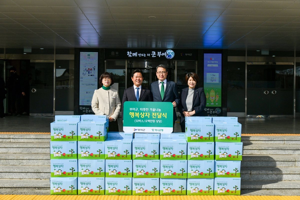 박정현 부여군수는 “어려운 경제 여건 속에서도 지역사회를 위해 따뜻한 나눔을 실천해 준 하나은행 충청하나그룹에 깊이 감사드린다”며 “기탁받은 물품은 도움이 꼭 필요한 가정에 소중히 전달하겠다”고 전했다.
