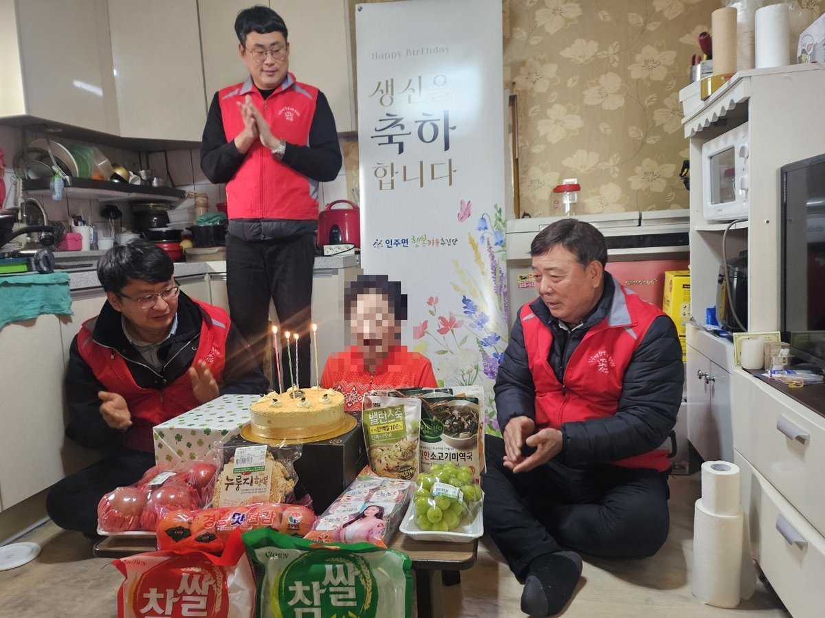 [충청뉴스큐] 인주면 행복키움추진단은 지난 26일 관내 저소득 독거 어르신 가정을 찾아 생신상을 차려드리고 축하 노래를 함께 부르며 따뜻한 시간을 가졌다.