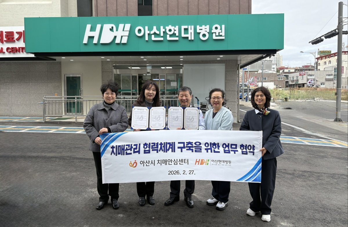 최원경 아산시보건소장은 “아산현대병원과 협력을 통해 치매 조기진단과 체계적인 관리에 최선을 다하겠다”며 “치매 환자와 가족의 경제적 부담을 완화하고 앞으로도 지역사회 자원을 지속적으로 발굴해 촘촘한 치매안전망을 구축해 나가겠다”고 밝혔다.