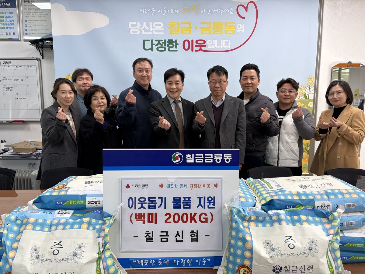 [충청뉴스큐] 충주 칠금신협은 4일 칠금금릉동행정복지센터를 방문해 백미 200kg을 기탁했다.