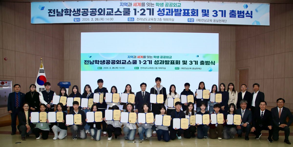 [충청뉴스큐] 전남교육 꿈실현재단은 지난 2월 26일 전라남도교육청 2층 대회의실에서 ‘전남학생공공외교스쿨 1·2기 성과발표 및 3기 출범식’을 개최했다.