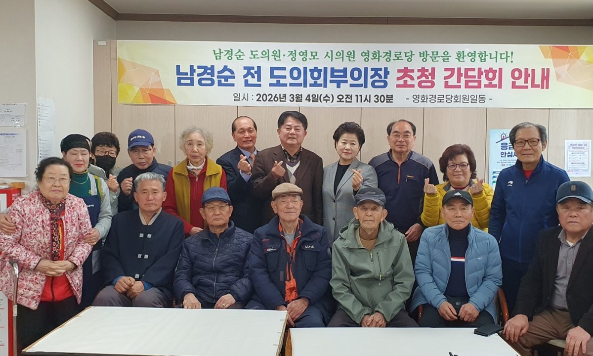 [충청뉴스큐] 수원특례시의회 보건복지위원회 정영모 의원은 2026년 3월 4일 영화경로당에서 남경순 전 경기도의회 부의장을 초청해 간담회를 개최하고 어르신들과 함께 지역 현안 및 경로당 이용 환경에 대한 의견을 청취했다.