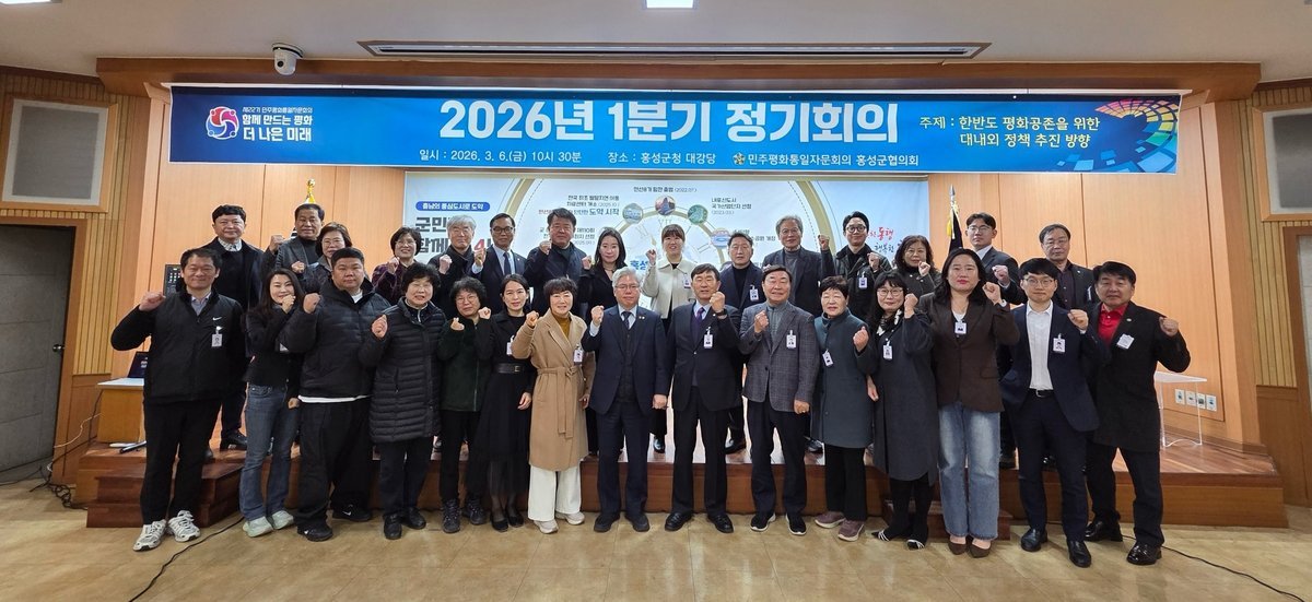 [충청뉴스큐] 홍성군은 민주평화통일자문회의 홍성군협의회가 지난 6일 홍성군청 대강당에서 자문위원 40명이 참석한 가운데‘한반도 평화공존을 위한 대내외 정책 추진방향’을 주제로‘2026년 1분기 정기회의’를 개최했다고 밝혔다.